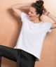 Bluzka o kształcie A z wydłużonym tyłem i szerokim dołem. Szwy boczne, idące po skosie ku dołowi optycznie wyszczuplają sylwetkę. Dekolt w kształcie lekkiej łódki. Dzianina bawełniana z dodatkiem elastanu najwyższej jakości.