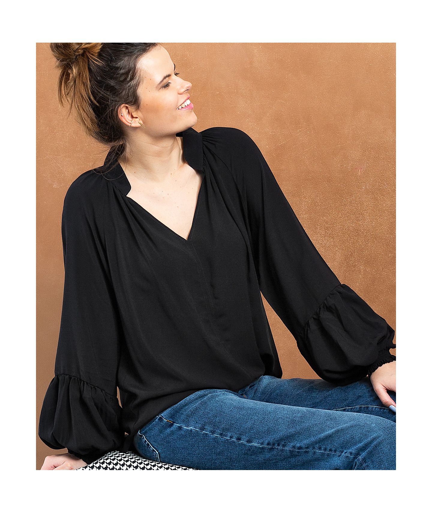 Bluzka wykonana z cienkiej tkaniny wiskozowej ze stójką i marszczeniami przy dekolcie. Dolna część rękawów wszyta obficie marszczona tworzy projekt wyjątkowy i niezwykle elegancki. Oczywiście jak zawsze u nas - do pomieszania stylu, świetnie sprawdzi się w połączeniu róznież np ze spodniami i butami o sportowym charakterze:)