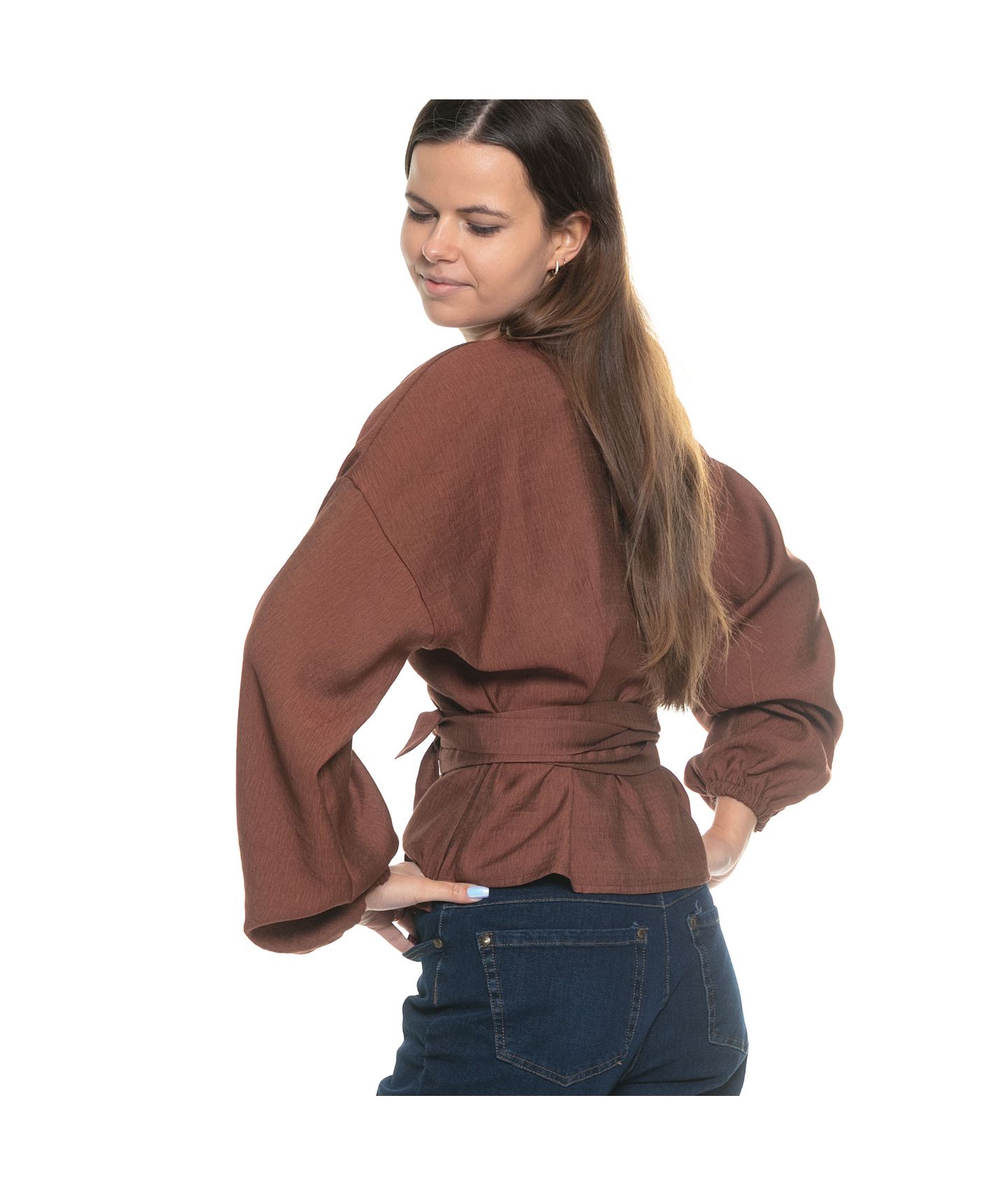 Sol to kopertowa, wiązana w talii bluzka pieknie podkreślająca sylwetkę. Kopertowy otulający fason tworzy fantastyczny, długi i wysmuklający optycznie dekolt V. Dolna część rękawów obficie marszczona. Oczywiście, jak zawsze u nas - do połączenia z ulubionymi jeansami lub eleganckim dołem, w zależności od nastroju:)