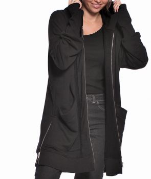 Fantastyczna, ciepła i obowiązkowa w tym sezonie długa bluza o kroju płaszcza. Nisko wszyte rękawy wykończone rozcięciem zapinanym na napy, na dole po bokach również napy w kolorze mosiądzu. Wykonana z mięsistej, drapanej dzianiny bawełnianej doskonałej jakości. W nieco cieplejsze dni z powodzeniem zastąpi płaszcz, piękne wykończenie każdej stylizacji.