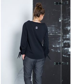 Bluzka wykonana z cienkiej tkaniny wiskozowej z ozdobnym wiązaniem pod szyją. Rękawy wykończone gumką, zaokrąglone doły. Interesująca propozycja dla Pań lubiących styl romantyczny - elegancki jak i tych z Was, które w tym sezonie noszą snickersy lub kowbojki:)