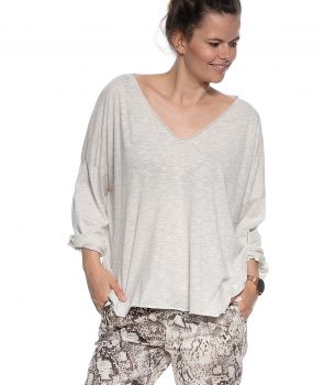 Bluzka-bluza wykonana z wysokogatunkowej dzianiny bawełnianej. Lekko zbufowane rękawy, fantastycznie skrojony rękaw reglanowy i zaokrąglone doły. Luźny krój pozwala nosić ją zarówno jako bluzkę jak i lekką bluzę - wierzchnią warstwę.
