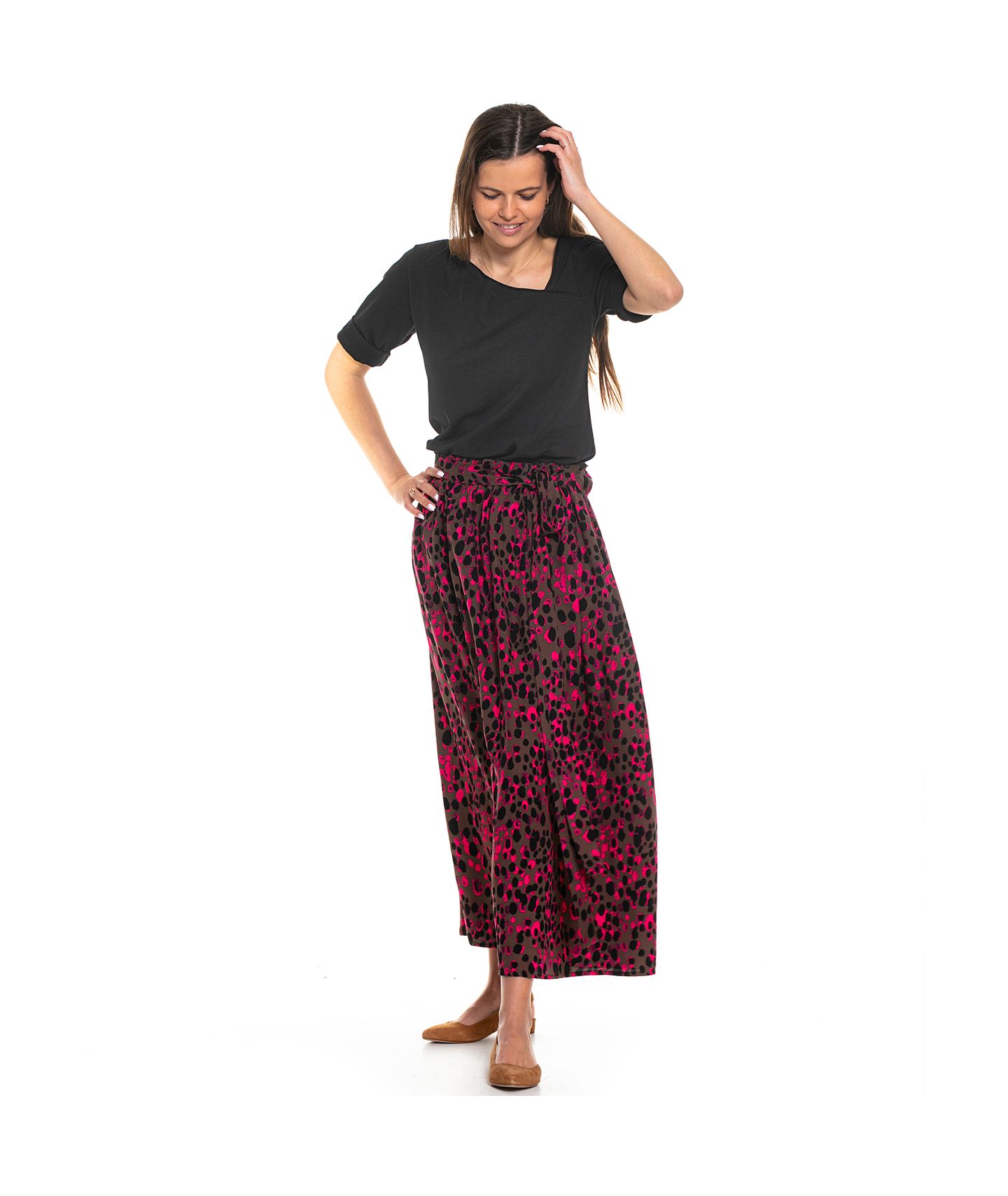 Długa, mocno marszczona spódnica wykonana z wysokogatunkowej tkaniny wiskozowej w magicznych kolorach. Świetnie komponuje się z elegancką bluzką, klasycznym t-shirtem jak i obszernym swetrem lub bluzą. Jak zwykle u nas: do szpilek lub wygodnych trampek. W pasie guma oraz długi pas, który zawiązany na kokardę stworzy romantyczny look:) Po bokach kieszenie.