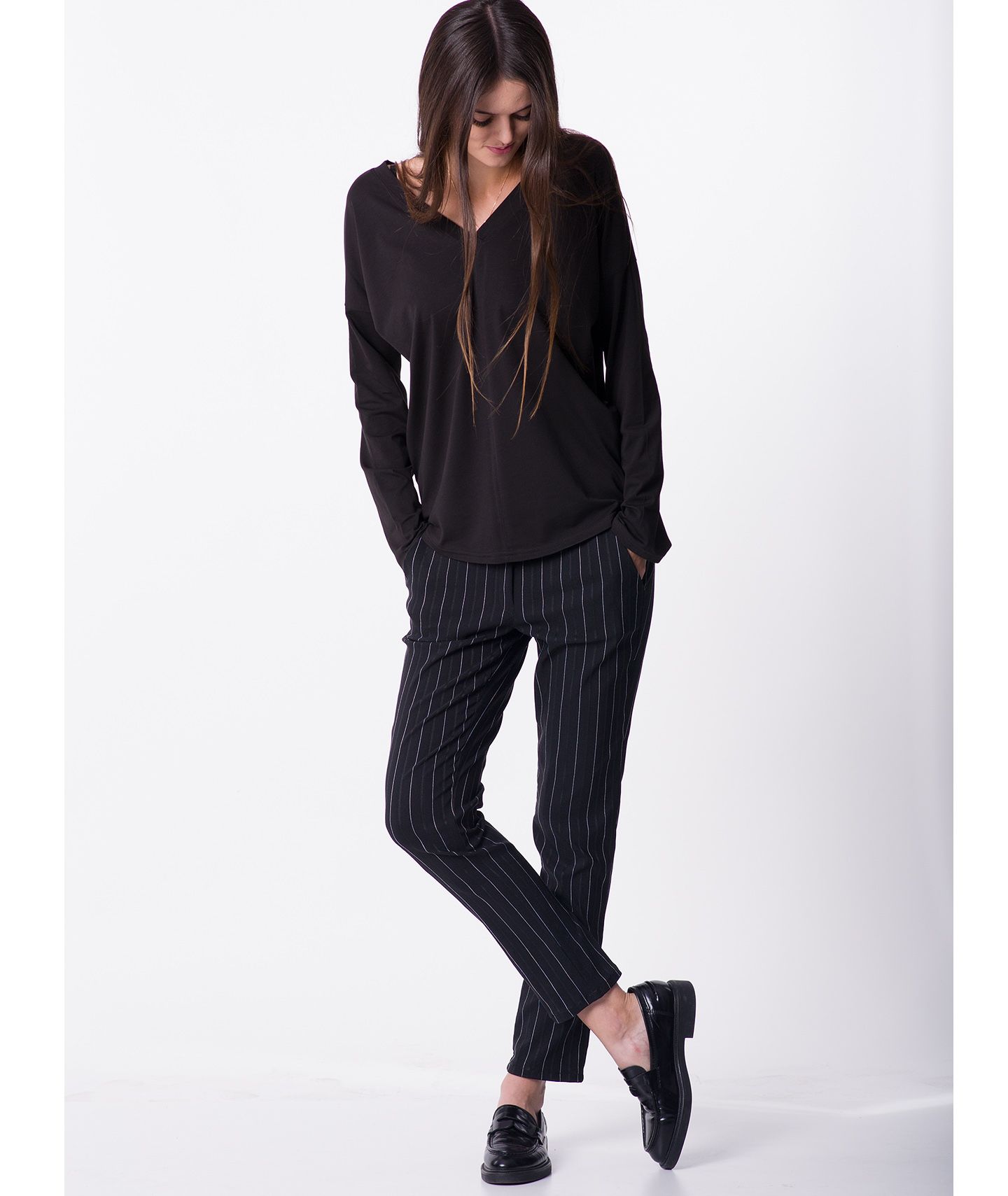 Materiał: tkanina, wiskoza 74%, poliester 11%, polyamind 11%, elastan 4%/kolor: czarny, prążek/PRODUKT POLSKI