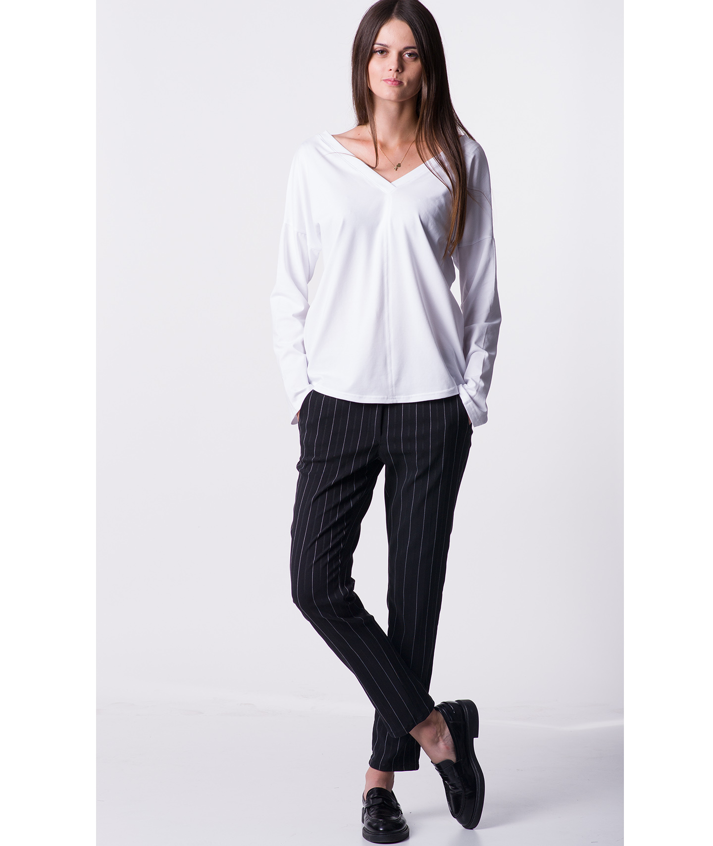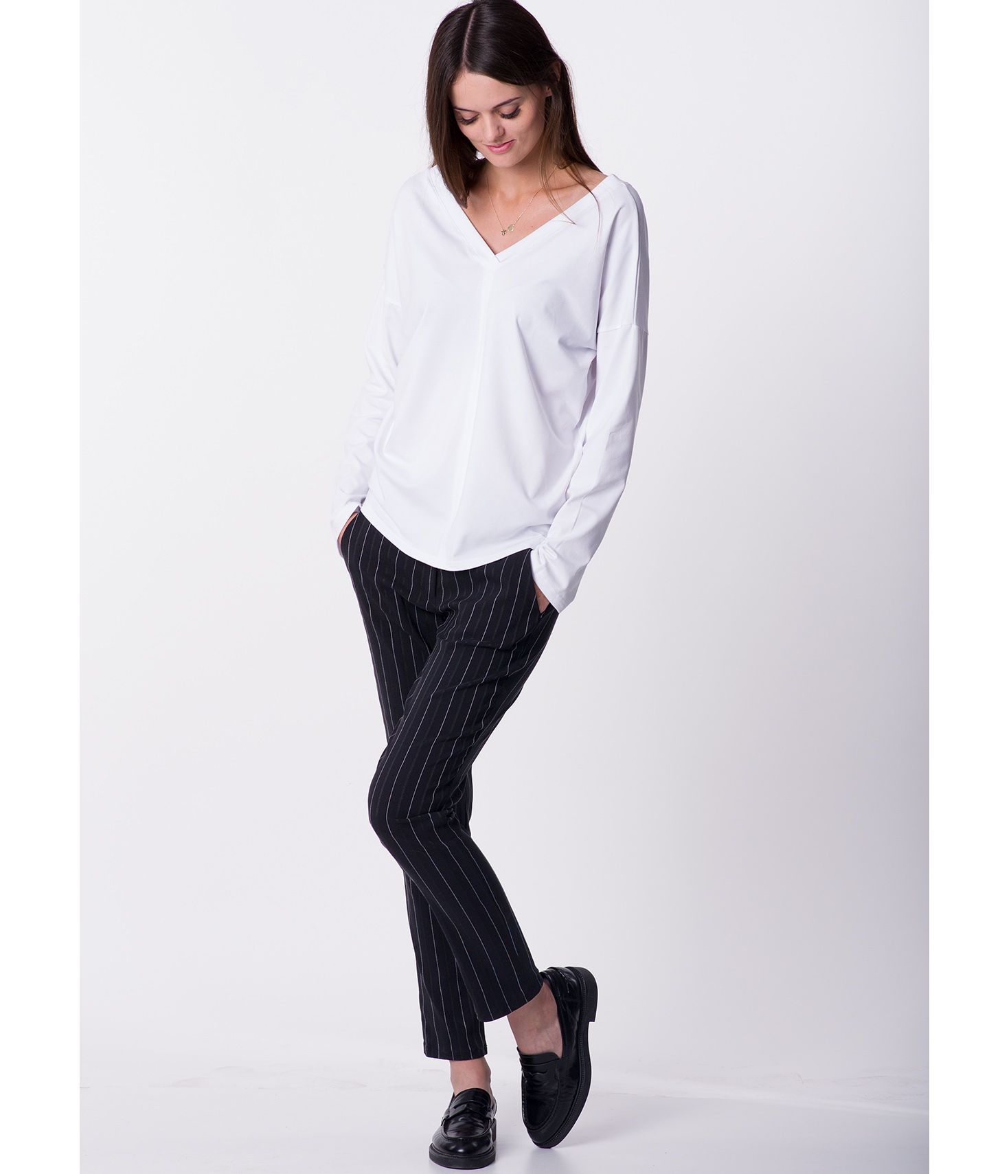 Quincy spodnie z wysokiej jakości miękkiej tkaniny. Świetnie wyglądają noszone lekko obniżone, idealnie pasują do stlizacji biurowej, choć lubimy przełamywać klasykę i nosić do nich bluzy. Guma w pasie, delikatne zaszewki z przodu. Nogawka lekko zwężająca się ku dołowi. Must have! Wyszczuplają!