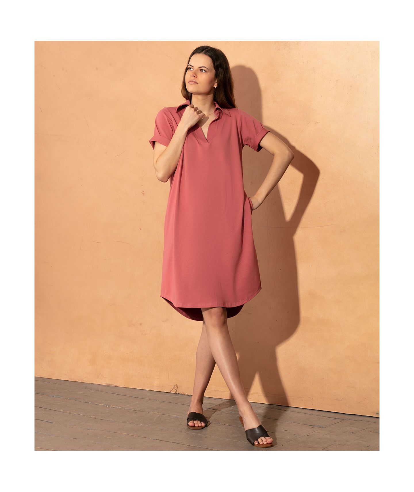 Amica to swobodna, luźniejsza sukienka z najbardziej aktualnym w tym sezonie dekoltem V wykończonym kołnierzykiem polo. Wykonana z miękkiej, wysokiej jakości dzianiny bawełnianej. Zaokrąglone doły, tył nieco dłuższy, kieszenie w szwach bocznych to wszystko to, co powinna mieć sukienka idealna;) POLECAMY!